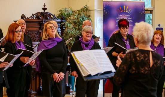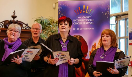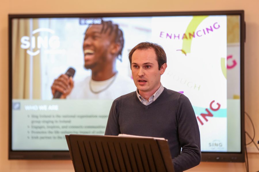 Presentations by Daniel Clements (Sing Ireland), Bríd Cutliffe (Ardnashee School and College, Derry) and Siobhan Heaney (Hive Cancer Support Choir, Derry).